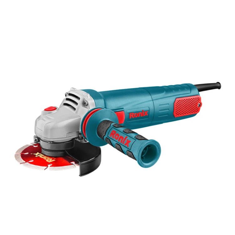 اقلام همراه: دسته جانبی طراحی شده توسط رونیکس، گارد محافظ، صفحه برش گرانیت 115 میلیمتری، آچار، یک جفت زغال اضافه